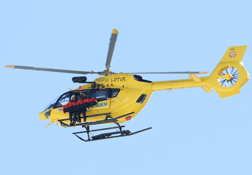 2月8日,一架直升机接走受伤的好意思国队选手沃恩。新华社记者张晨霖 摄