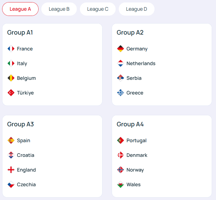 接下来是本赛季A级联赛的分组情况: