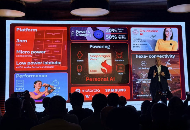骁龙平台演示屏 · 展示骁龙Wear Elite平台3nm、低功耗等中枢特点