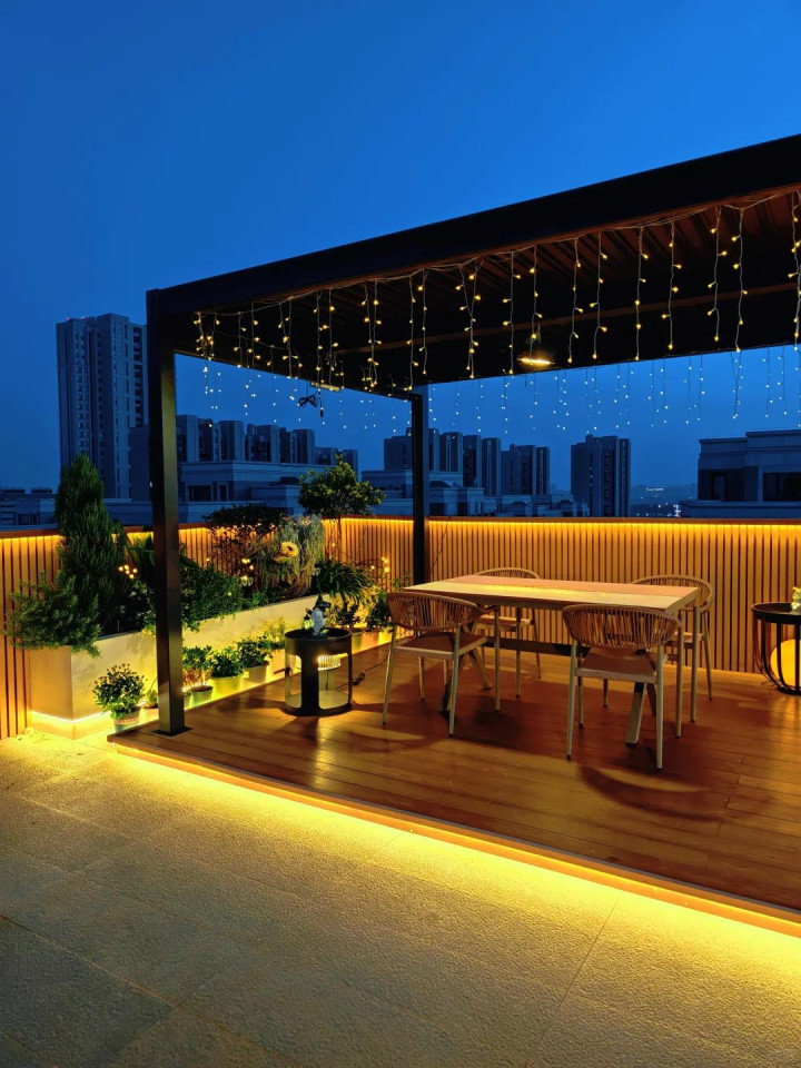 晒被子、晾一稔,偶尔邻居打个呼唤借用。但夜晚的露台不同——那是全齐属于我方的六合。