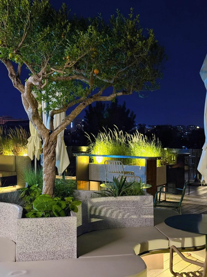 头顶不是天花板,是真显现切的夜空。 有时辰有星星,大多时辰唯有深蓝色的天幕,和边远楼宇能干的灯火。