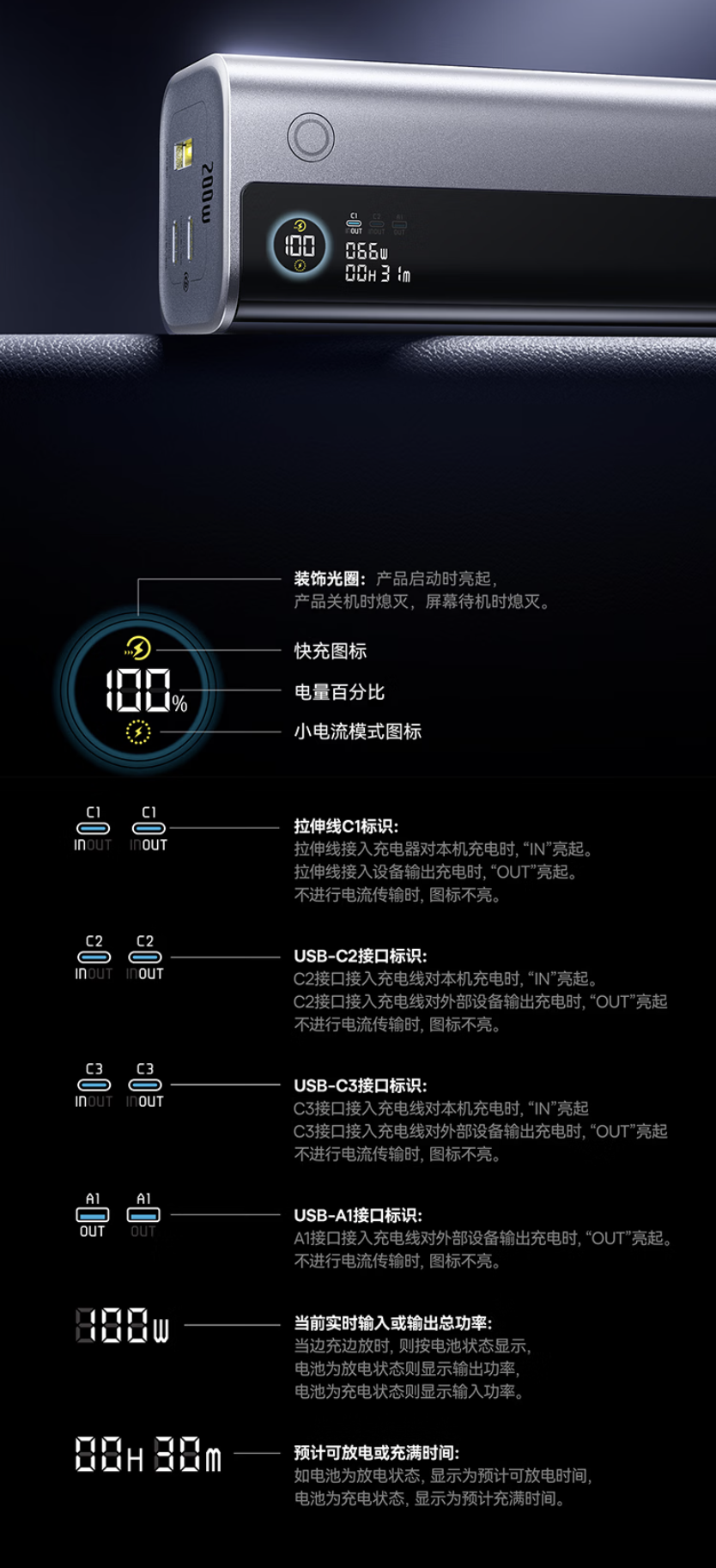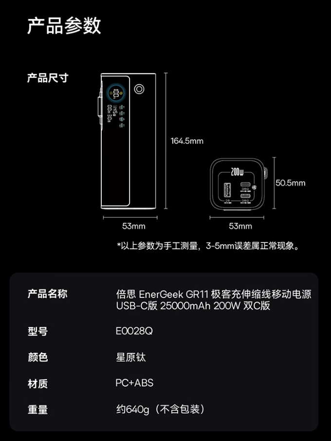 该移动电源举座摄取银色配色,一分彩app官方下载带有 LED 数显屏,提供 1 根伸缩式 USB-C 线及 1 根永别式 USB-C 线,其中 USB-C 线和 USB-C 接口均撑执 100W 输出,USB-A 接口撑执 22.5W 输出,在双口方法下可已毕 100W + 100W 供电。